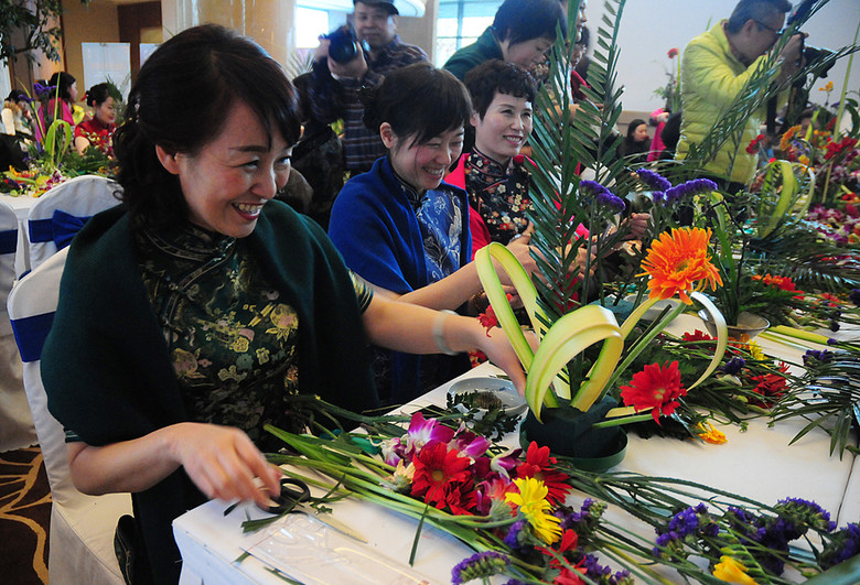 斗南花卉分会场现场,看旗袍美女如何演绎插花艺术